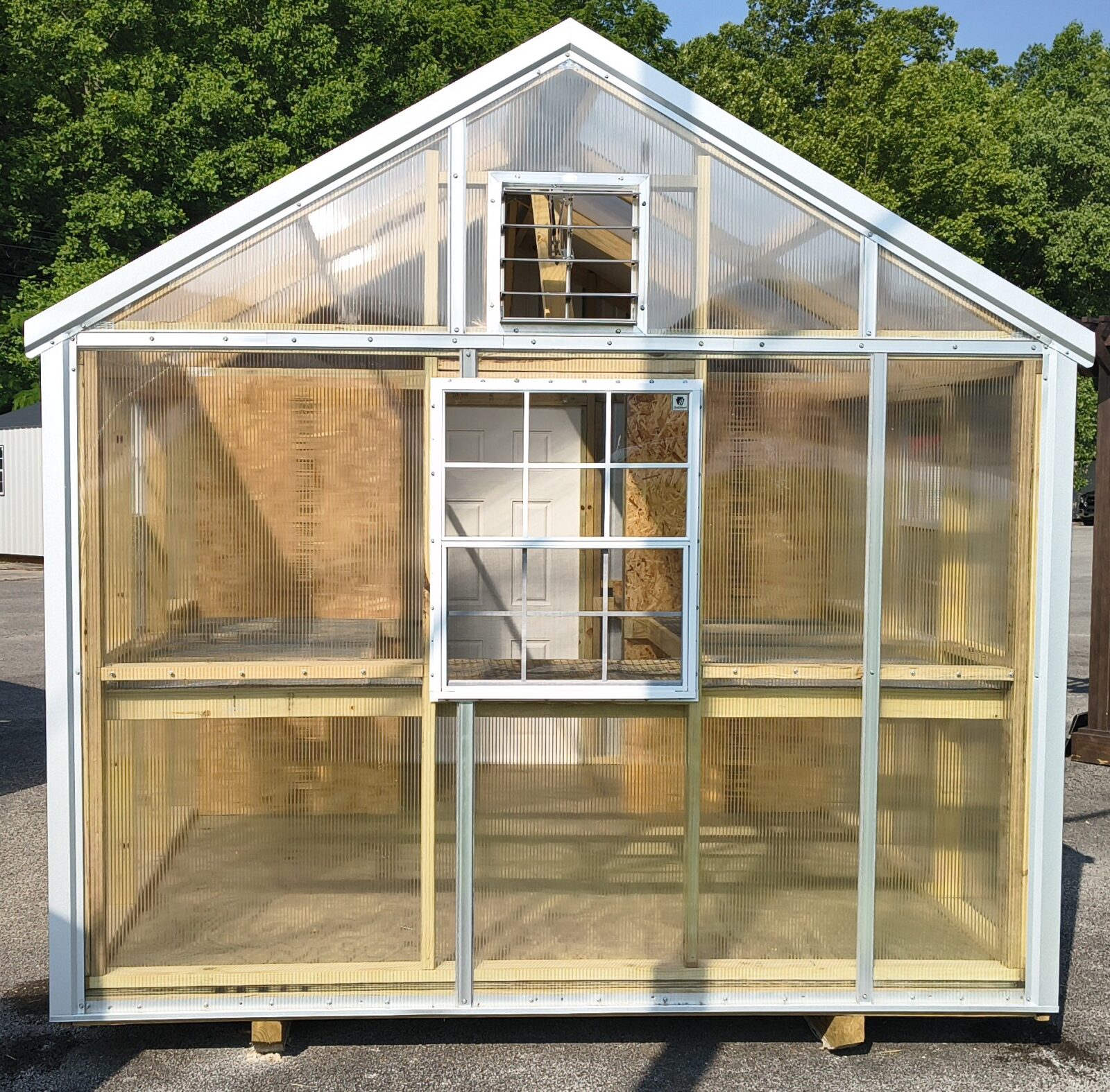 Enhance your gardening experience with our 10 x 12 Greenhouse! This sturdy structure features Galvalume siding, Galvalume trim and metal roof, three 30 x 36 windows, and one 24 x 27 window. The framing and flooring are made of pressure treated wood to ensure durability. Bring your green thumb to the next level with this spacious and functional greenhouse.