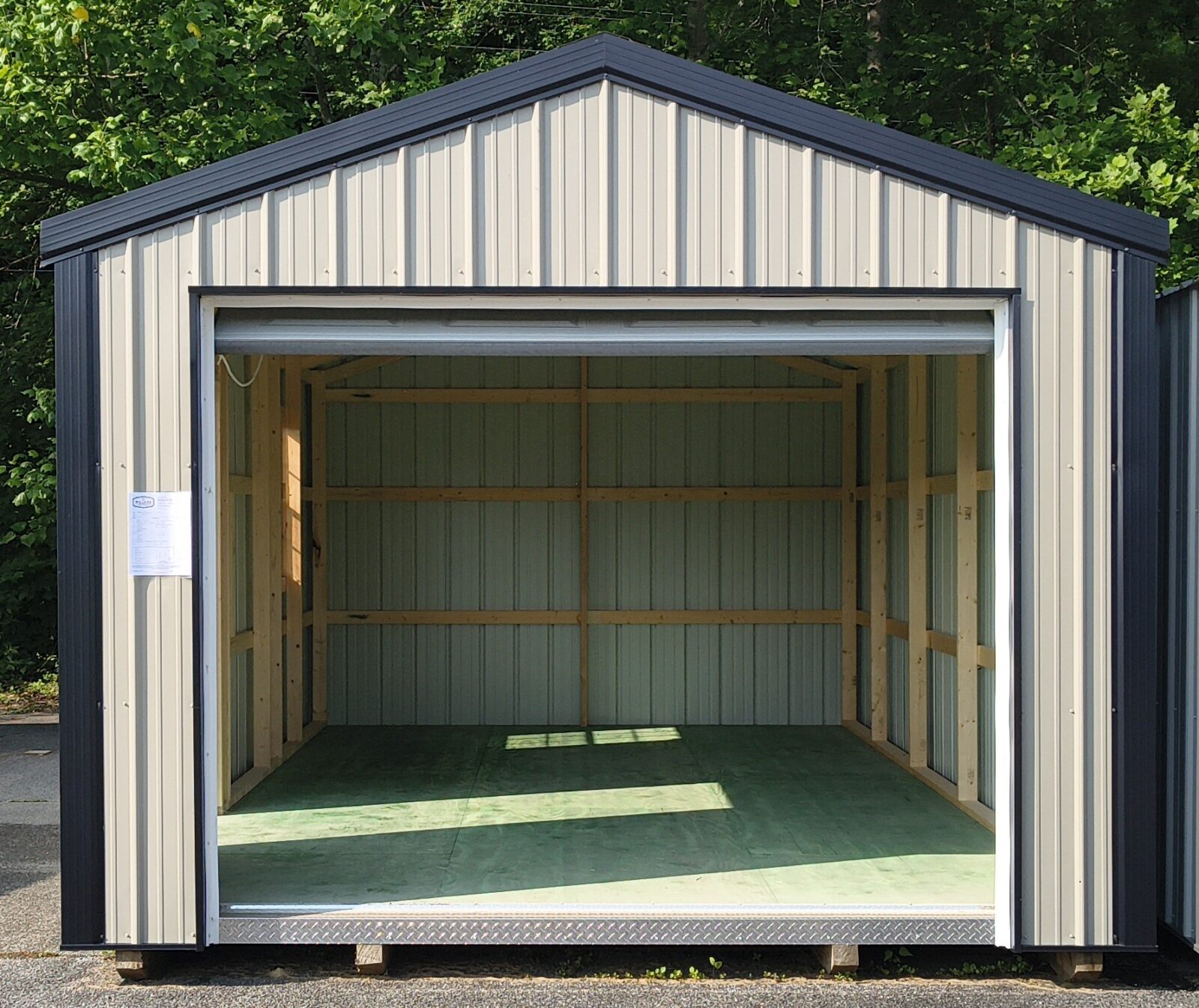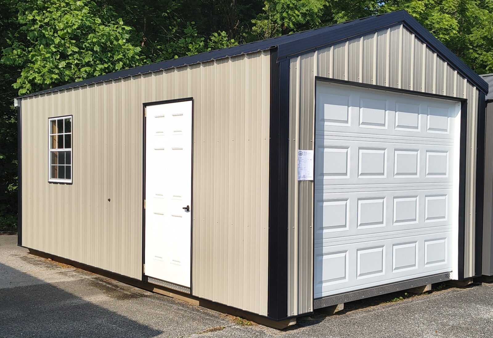 Transform your outdoor space with our stylish 12 x 20 Metal Garage in a classic Clay color with Shiny Black trim and metal roof. This garage features one 30 x 36 window, a convenient man door, and a spacious 9 x 7 garage door for easy access. Upgrade your property with this durable and attractive storage solution.