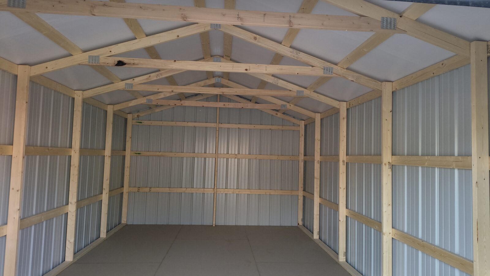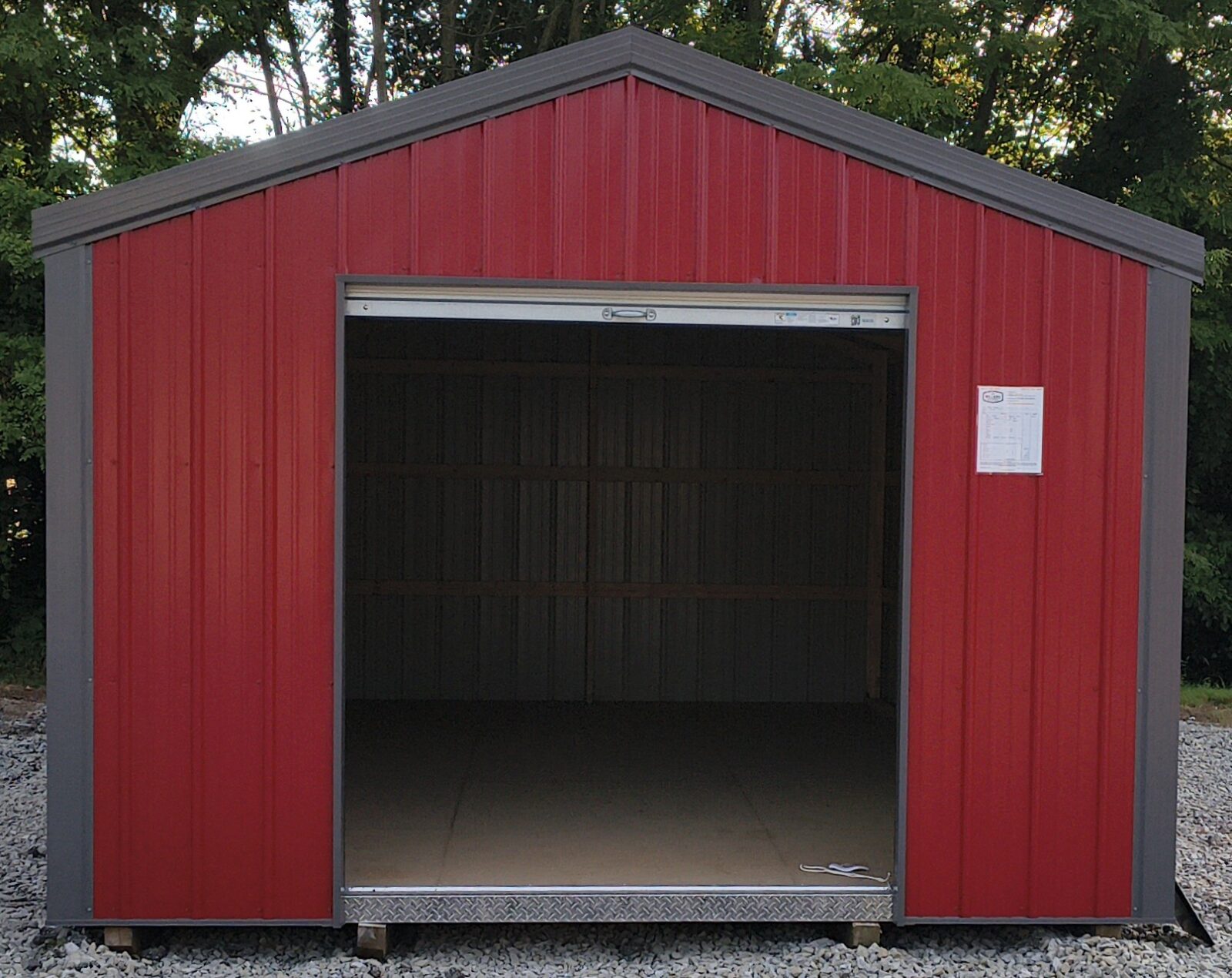 This Standard Metal Shed is the perfect storage solution for your backyard! With its spacious 12 x 20 size, dark red siding, and charcoal trim, it will blend seamlessly into your outdoor space. The charcoal metal roof adds durability and style, while the 6′ rollup door makes accessing your belongings a breeze.