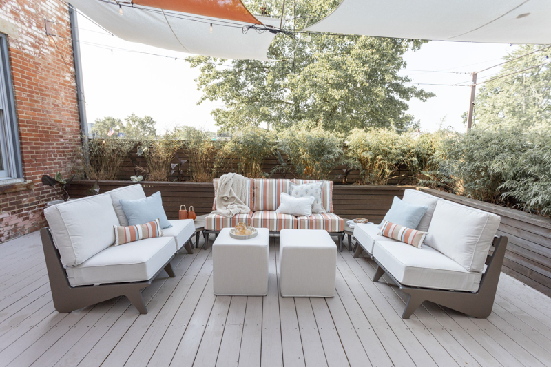 • Marine Grade Poly (MGP) furniture is crafted from molded polyethylene, making it resistant to the elements, including UV rays, moisture, and extreme temperatures
